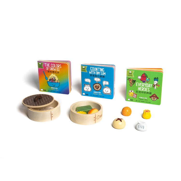 Bundle and purchase 3 Bitty Bao books (Counting with Dim Sum, Colors of Snow Ice, and Everyday Heroes) plus our Bitty Bao wooden dim sum toy in one click!