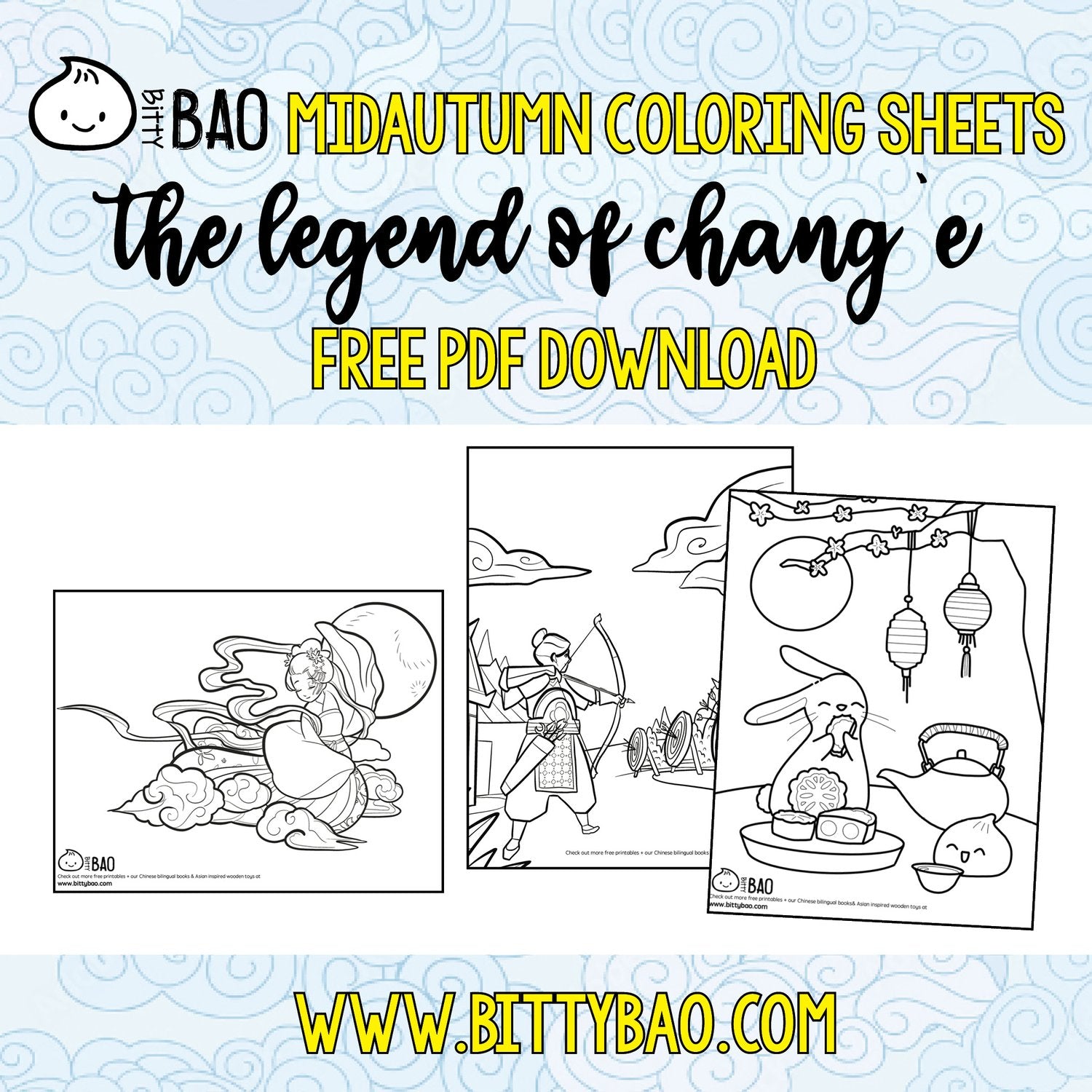 Download a free PDF of the cutest Legend of Chang'e coloring sheets! The perfect activity to do after reading our picture book!