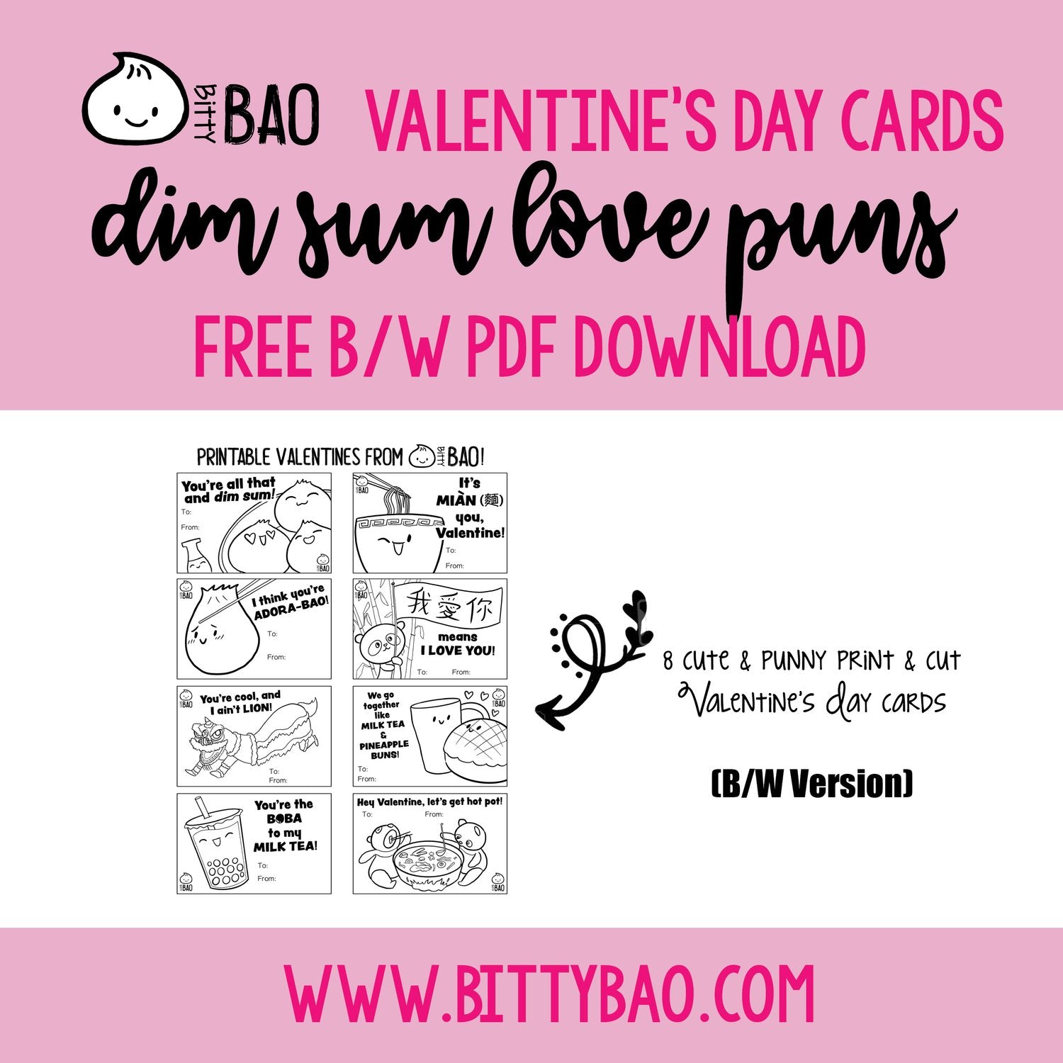 Download a free PDF of the cutest punny Bitty Bao Valentine’s Day cards!