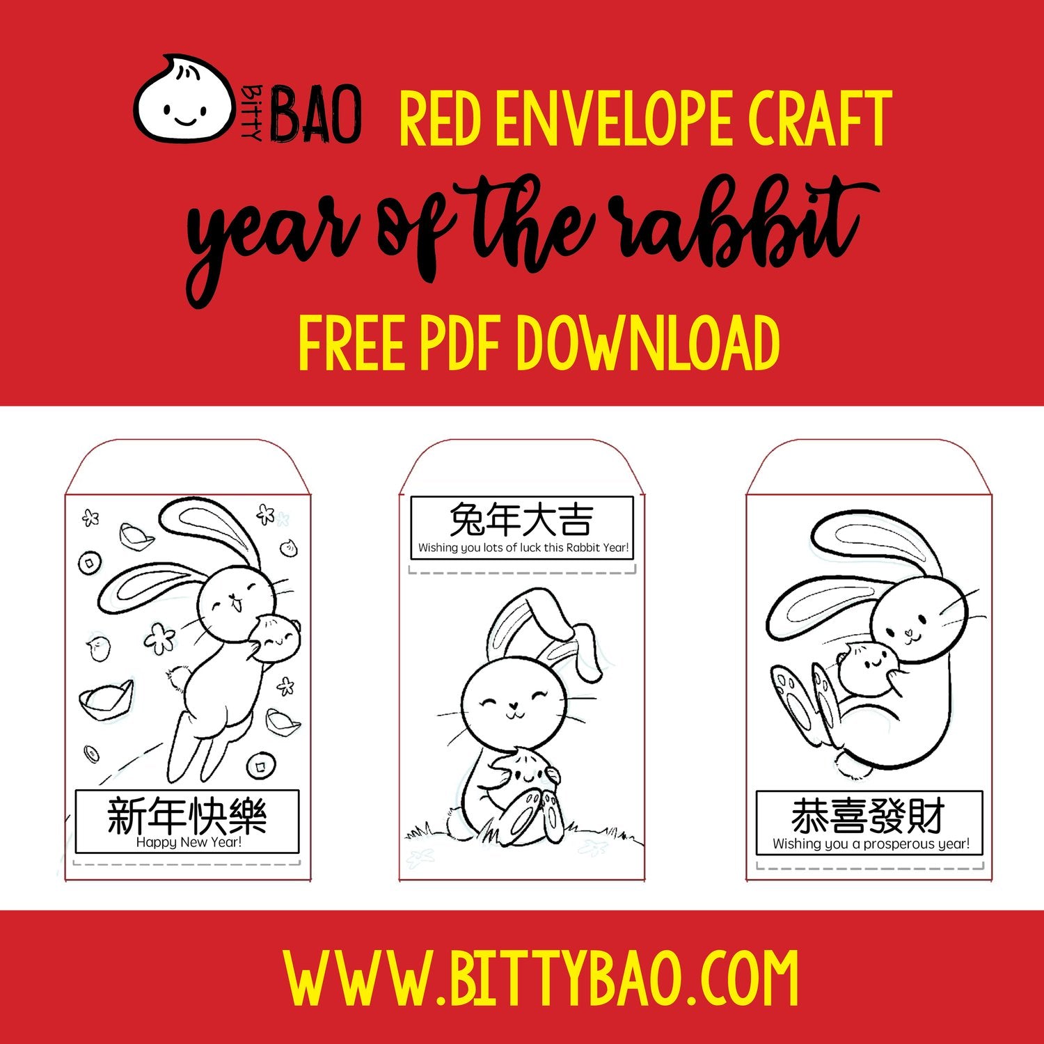 Download a free PDF of the cutest Bitty Bao red envelope craft for the year of the rabbit! Happy Lunar New Year!