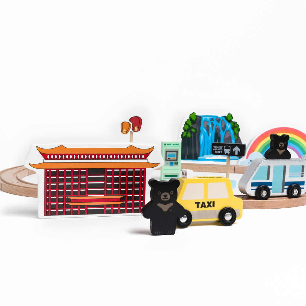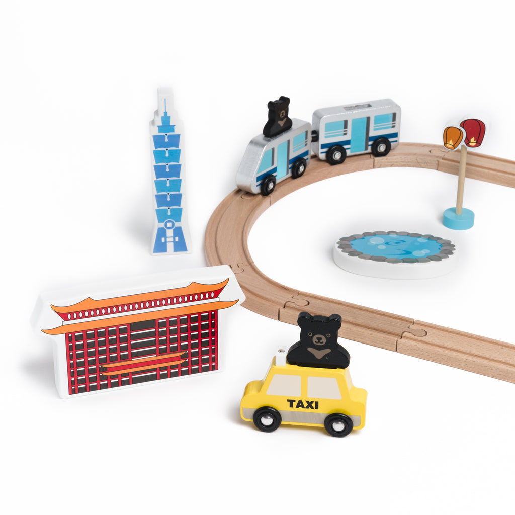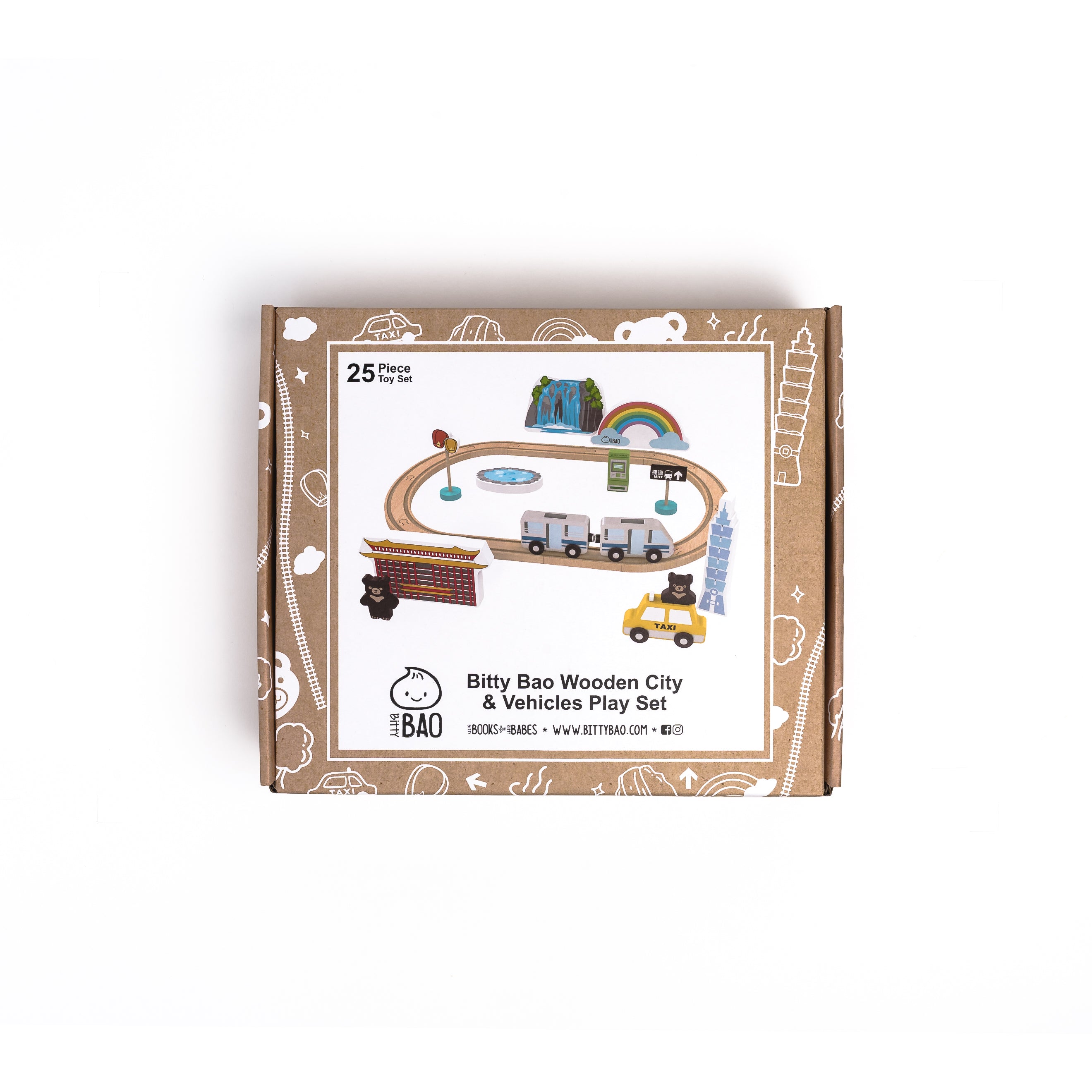 25-Piece Wooden Bitty Bao Wooden City and Vehicles Play Set